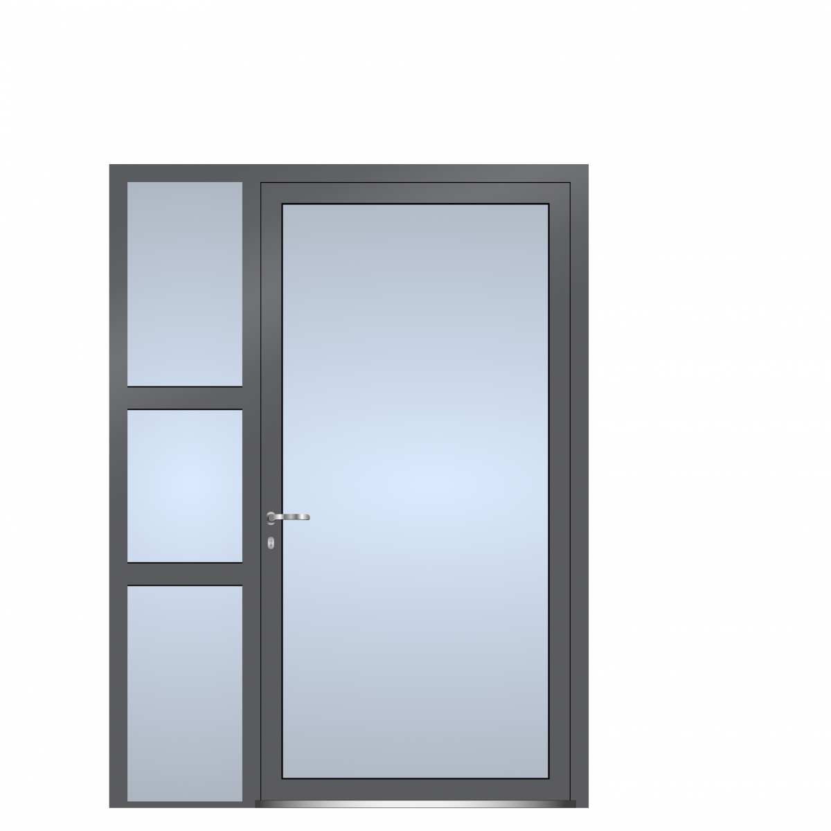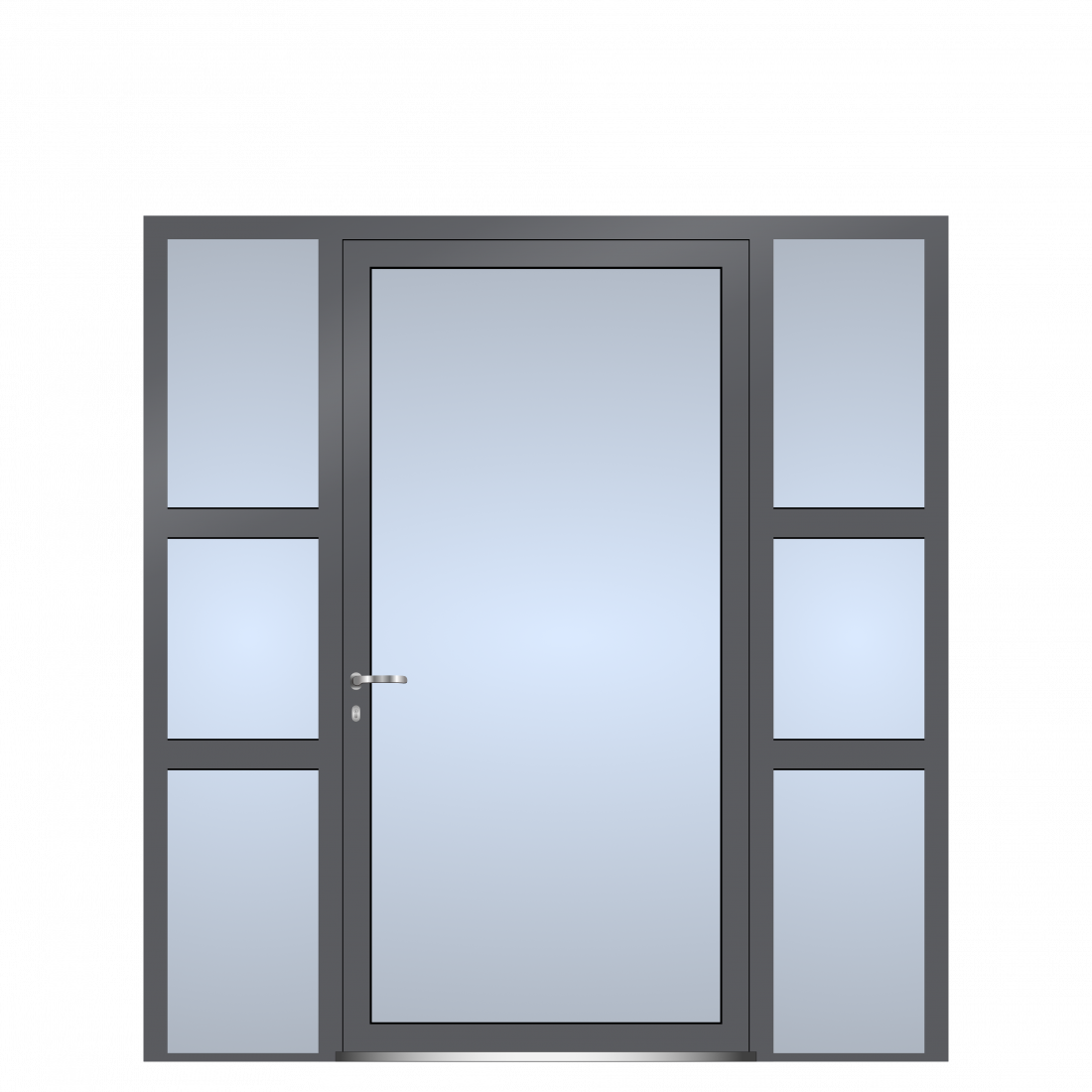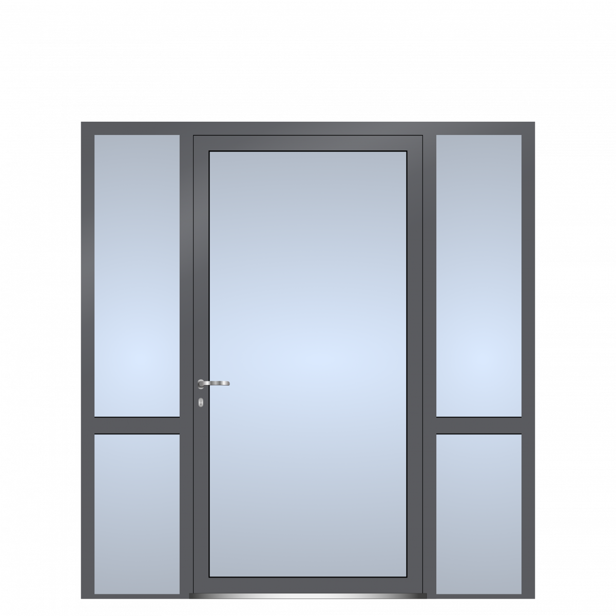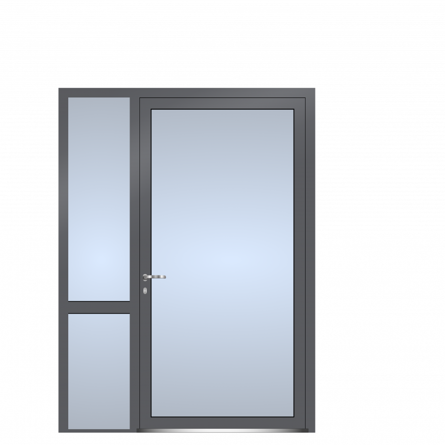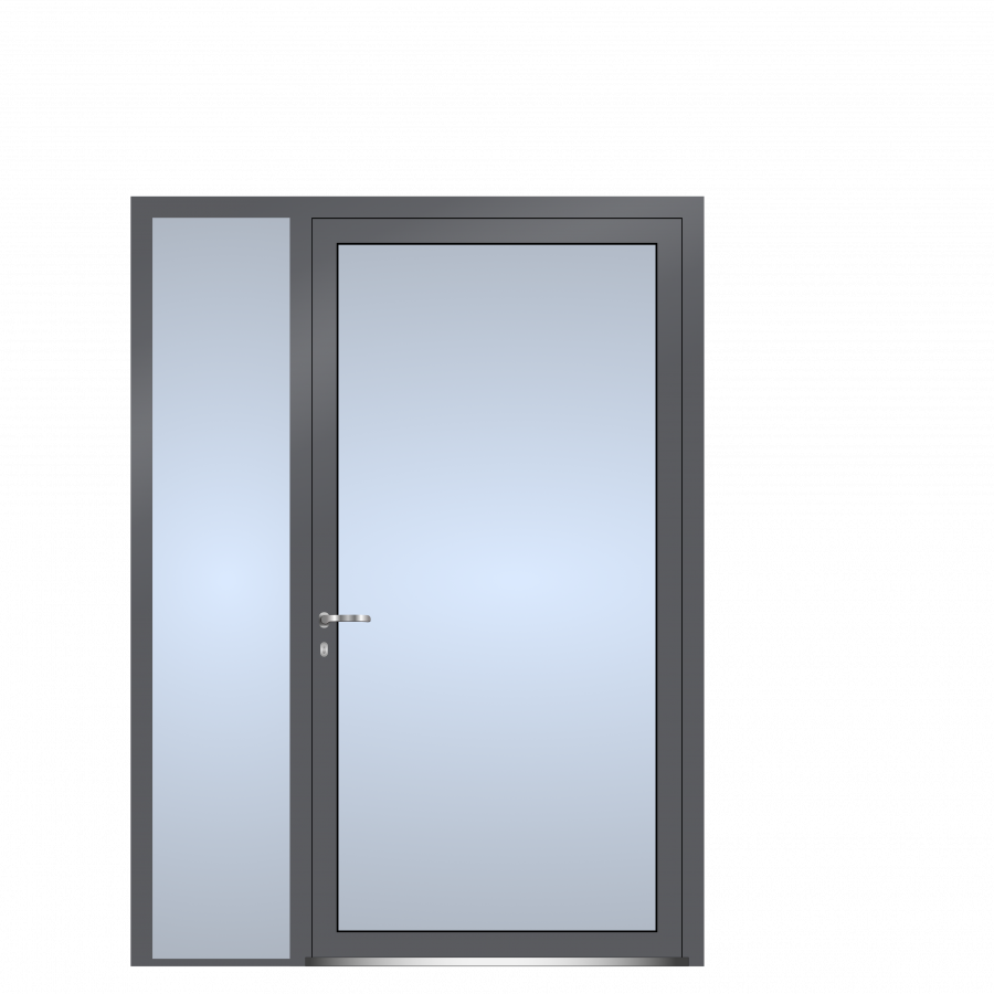 Drzwi GlassThermo 75 to drzwi aluminiowe z dużymi przeszkleniami przeznaczone do stosowania wszędzie tam gdzie istotne jest naturalne oświetlenie. W przypadku tych drzwi szerokość zabudowy ramy i skrzydła wynosi 75 mm. Ogromną zaletą tych drzwi jest znacznie bardziej konkurencyjna cena niż w przypadku drzwi panelowych przy jednoczesnym zastosowaniu poprzeczki w skrzydle i możliwości indywidualnego zaplanowania szyby. W GlassThermo 75 możliwy jest ponadto wybór wersji PLUS, która została wyposażona w dodatkowe kliny docieplające w ramie i skrzydle dzięki czemu drzwi te zyskują zwiększone właściwości termoizolacyjne. Dzięki zastosowaniu niskiego, anodowanego progu (około 20 mm) z przekładką termiczną zniwelowane zostały bariery stanowiące przeszkody w poruszaniu się pomiędzy przestrzenią zewnętrzną a wnętrzem budynku. Szeroki wybór kolorów, szklenia, klamek i pochwytów sprawia, że drzwi te z łatwością dopasujesz do stylu i charakteru budynku. Możliwe jest również zamontowanie w drzwiach zintegrowanej skrzynki na listy. Decydując się na drzwi GlassThermo 75 masz do wyboru aż 4 typy drzwi na które składają się drzwi jednoskrzydłowe orz drzwi z różnorakimi rodzajami naświetli (boczne, obustronne bądź górne).