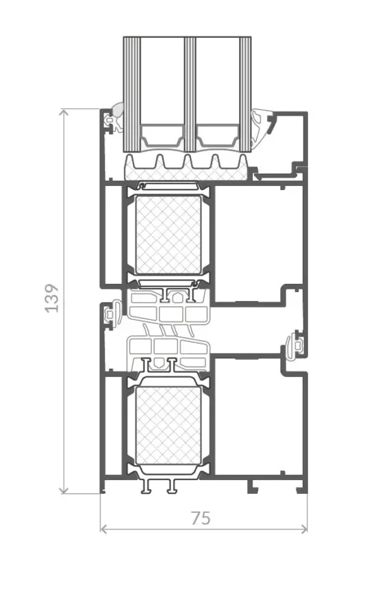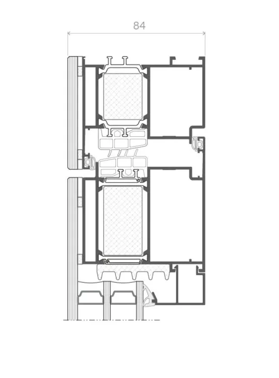 Trójkomorowa budowa profili aluminiowych. Zamki wielopunktowe w standardzie, dostępność zamków elektromotorycznych. Cztery warianty termiczne. Drzwi otwierane do wewnątrz i na zewnątrz. Nowe rozwiązania: pochwyt wpuszczany ze zintegrowanym oświetleniem LED i lamele dekoracyjne. Możliwość konstruowania drzwi jedno i dwuskrzydłowych z doświetlem bocznym lub górnym.
