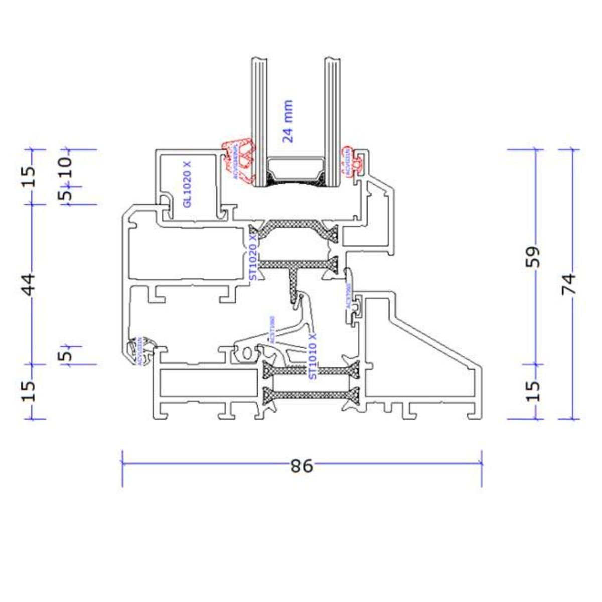 standardowo pakiet 4/18/4/18/4 Ug=0,5 W/m2K, ciepła ramka Swisspacer | Możliwość stosowania zespolenia od 14-68 mm | Do wyboru szyby: bezpieczne, hartowane, antywłamaniowe, przeciwsłoneczne, akustyczne, ornamentowe. |