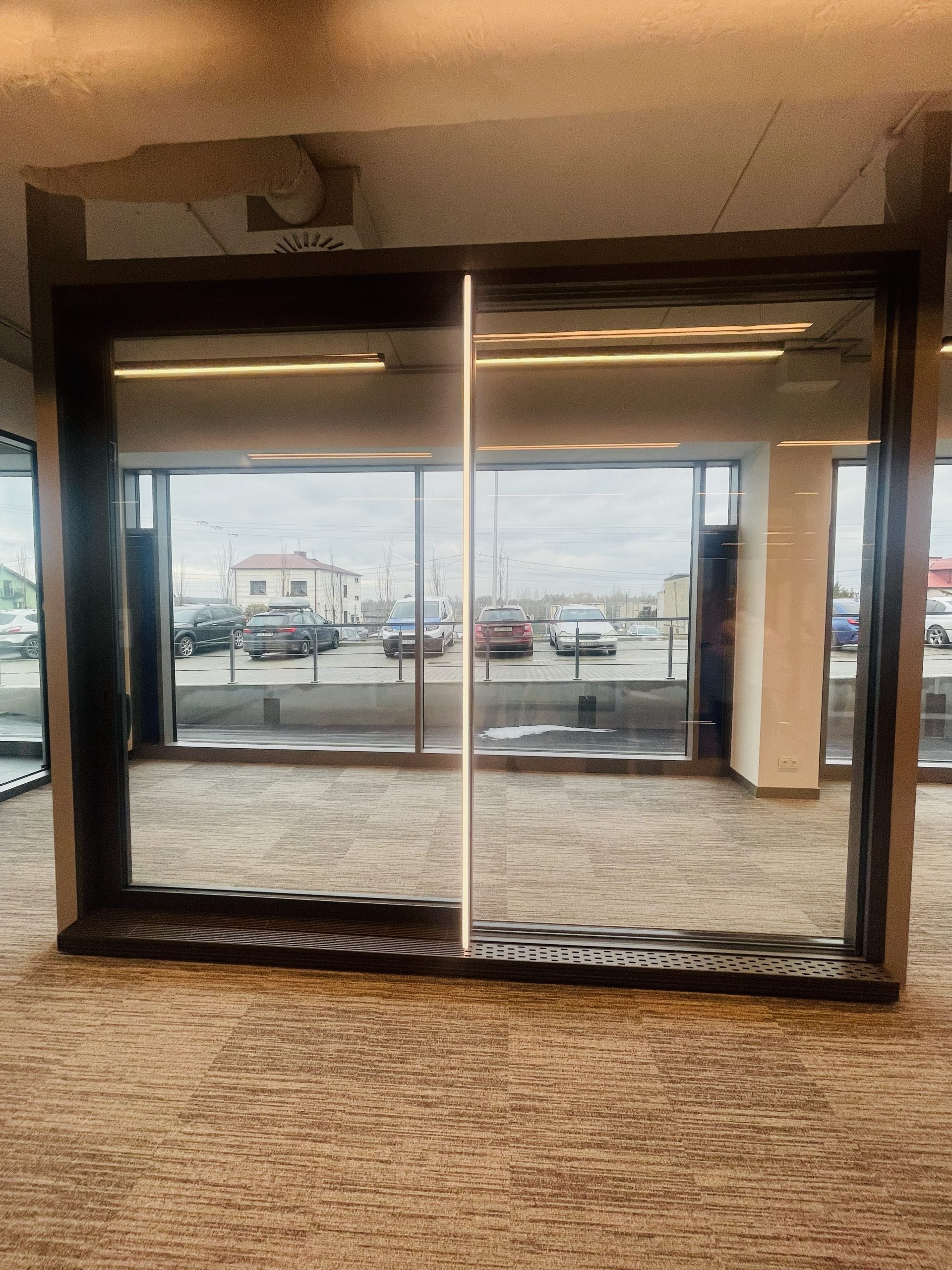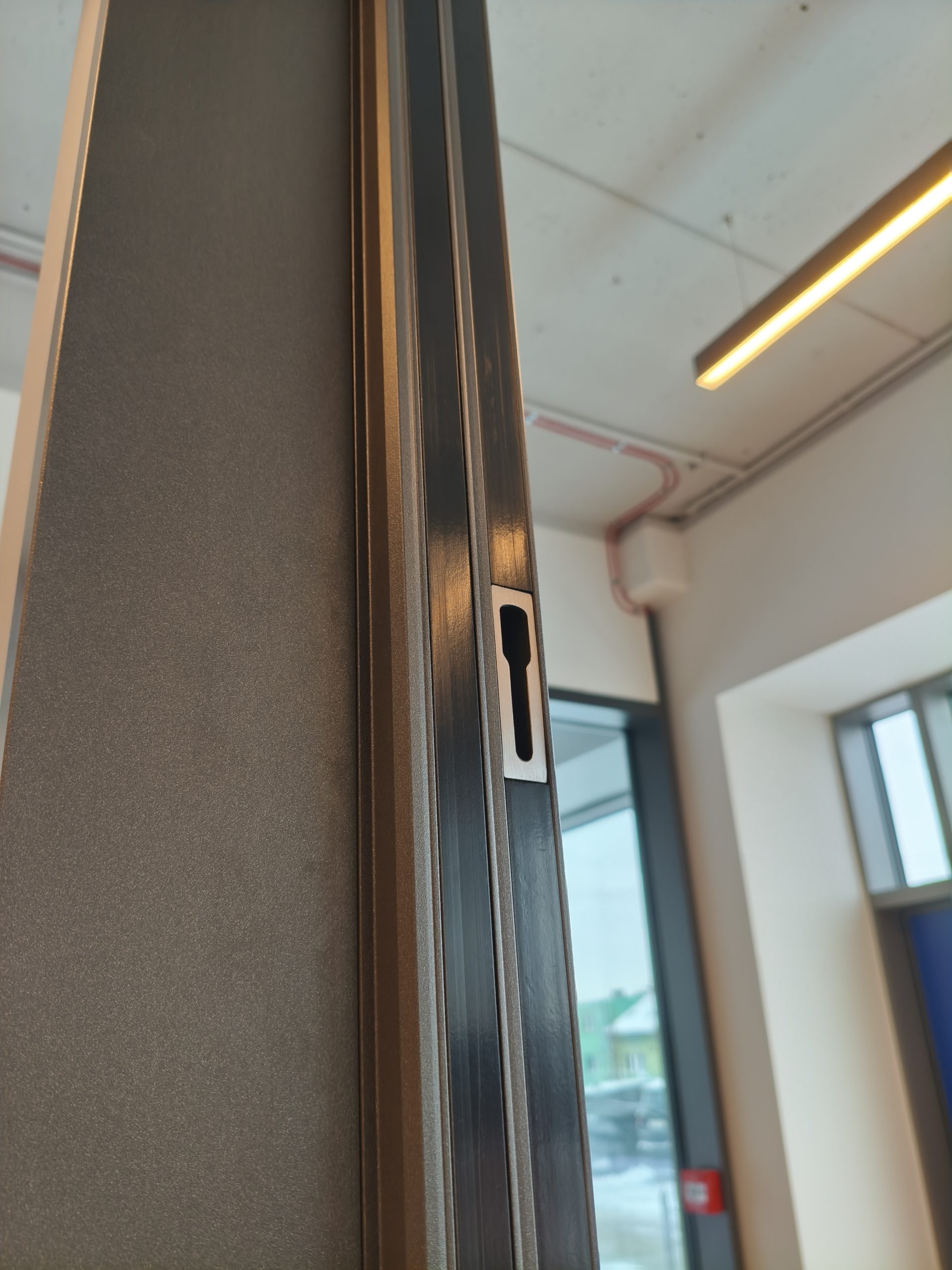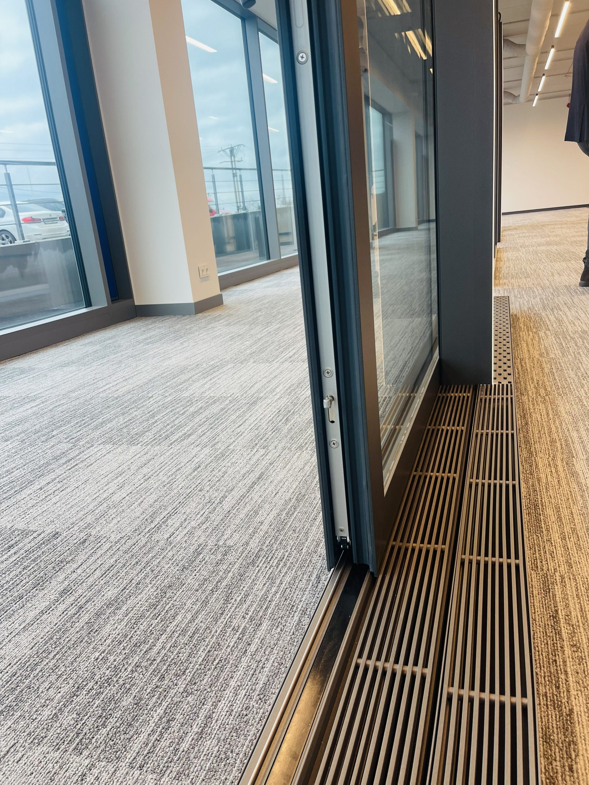 Mechanizm jezdny oraz część stała konstrukcji są całkowicie ukryte w posadzce. Użytkownicy widzą jedynie niewielką szczelinę o szerokości 9 mm, która zapewnia łatwy i swobodny przesuw skrzydła drzwiowego.