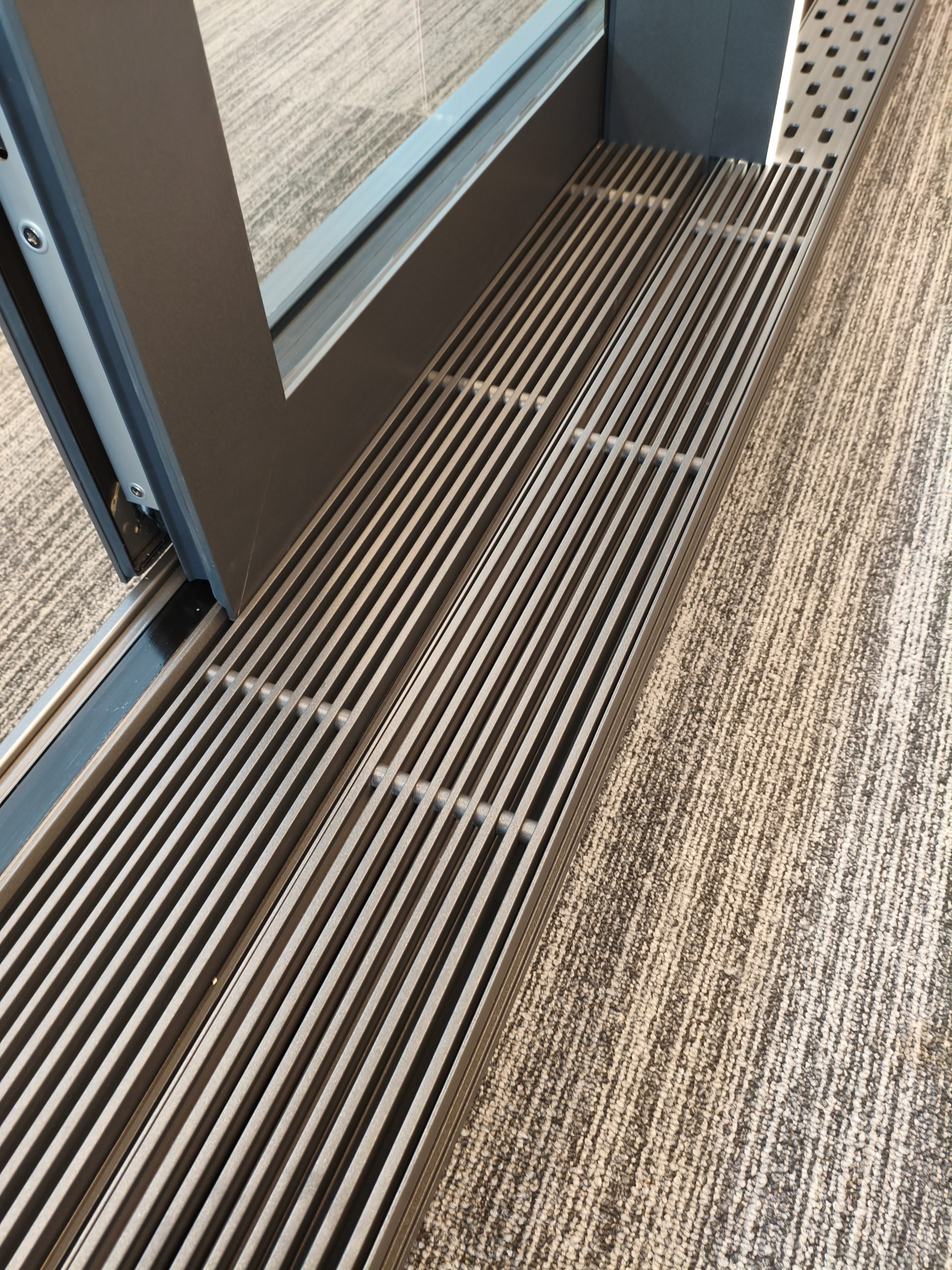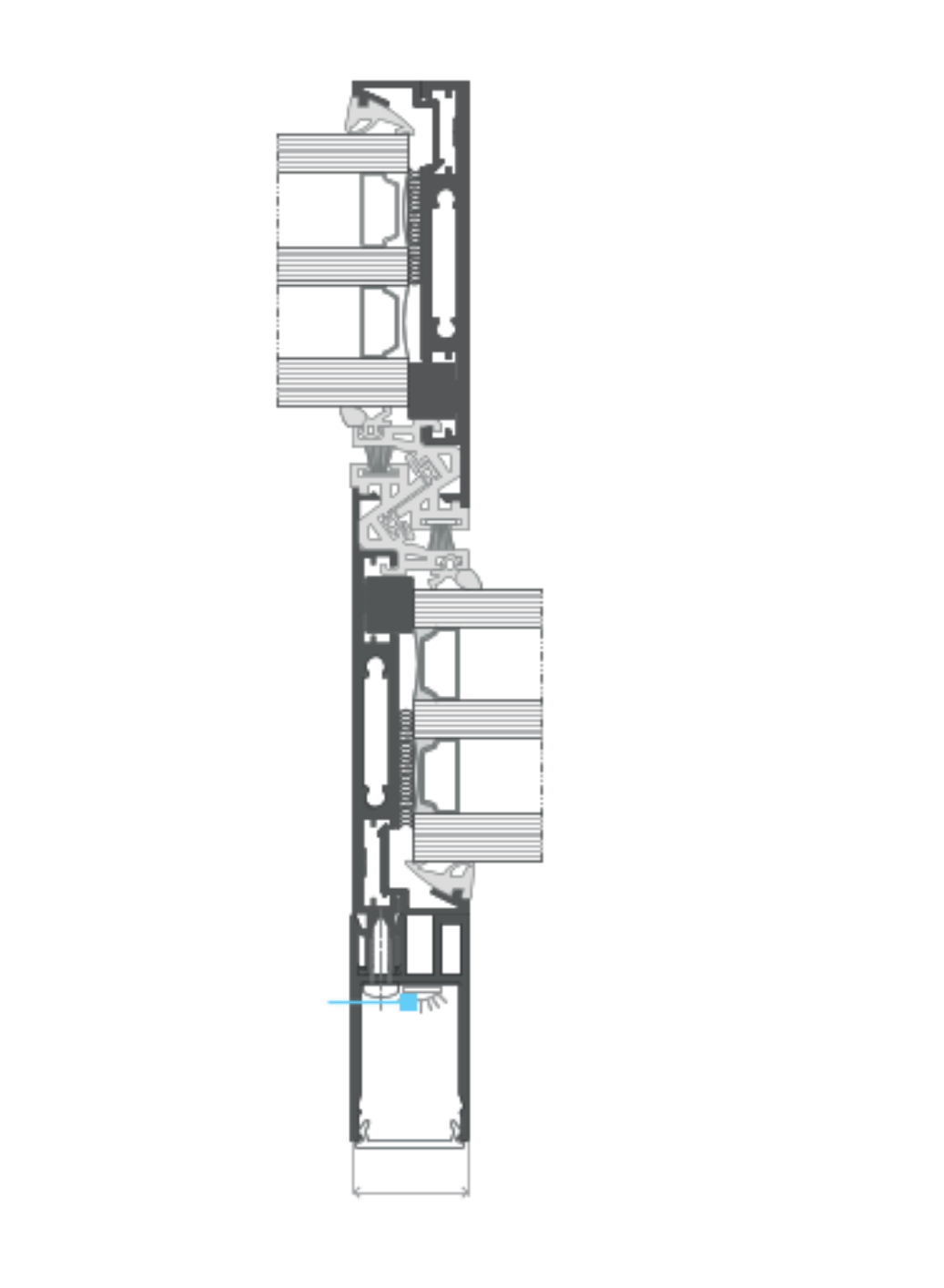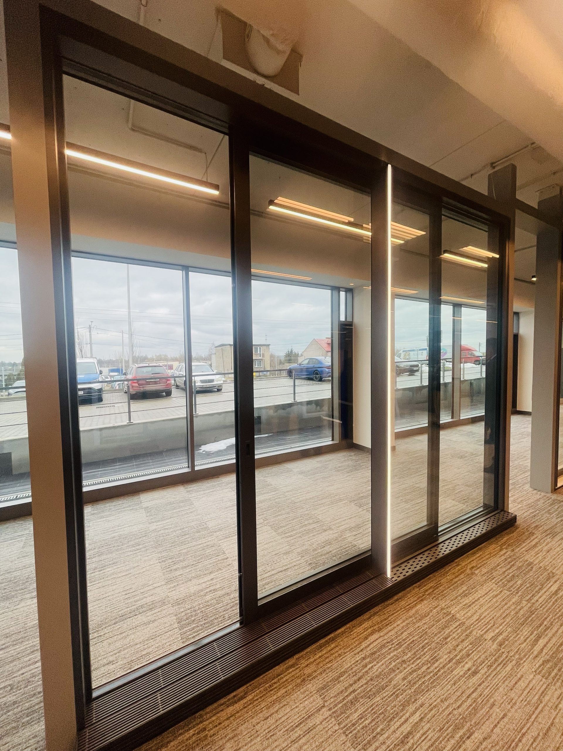 Mechanizm jezdny oraz część stała konstrukcji są całkowicie ukryte w posadzce. Użytkownicy widzą jedynie niewielką szczelinę o szerokości 9 mm, która zapewnia łatwy i swobodny przesuw skrzydła drzwiowego.