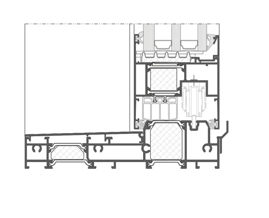System dostępny jest w schematach A, C, G oraz K i występuje w wariancie ULTRA ze słupkiem środkowym 25 mm. Umożliwia wykonywanie narożników całoszklanych – zarówno wewnętrznych, jak i zewnętrznych – bez konieczności stosowania dodatkowych profili maskujących, dzięki czemu po obu bokach HSa uzyskano elegancką, płaską powierzchnię. Zastosowano montowaną po obwodzie skrzydła uszczelkę akustyczną oraz nowy klips szklenia stałego, co eliminuje potrzebę przykręcania profilu do ościeżnicy. W standardzie dostępne jest także ukryte doszczelnienie skrzydła, bez widocznej zaślepki tworzywowej. System umożliwia automatyzację przesuwu skrzydeł drzwiowych i jest kompatybilny z odwodnieniem liniowym, systemową moskitierą, balustradą całoszklaną oraz skrzydłem wentylacyjnym. Dodatkowo możliwe jest zastosowanie okuć z zaczepem ukrytym w zasuwnicy, bez konieczności dodatkowego frezowania pod kieszeń zaczepu, a także ukrycie ościeżnicy w warstwie ocieplenia.