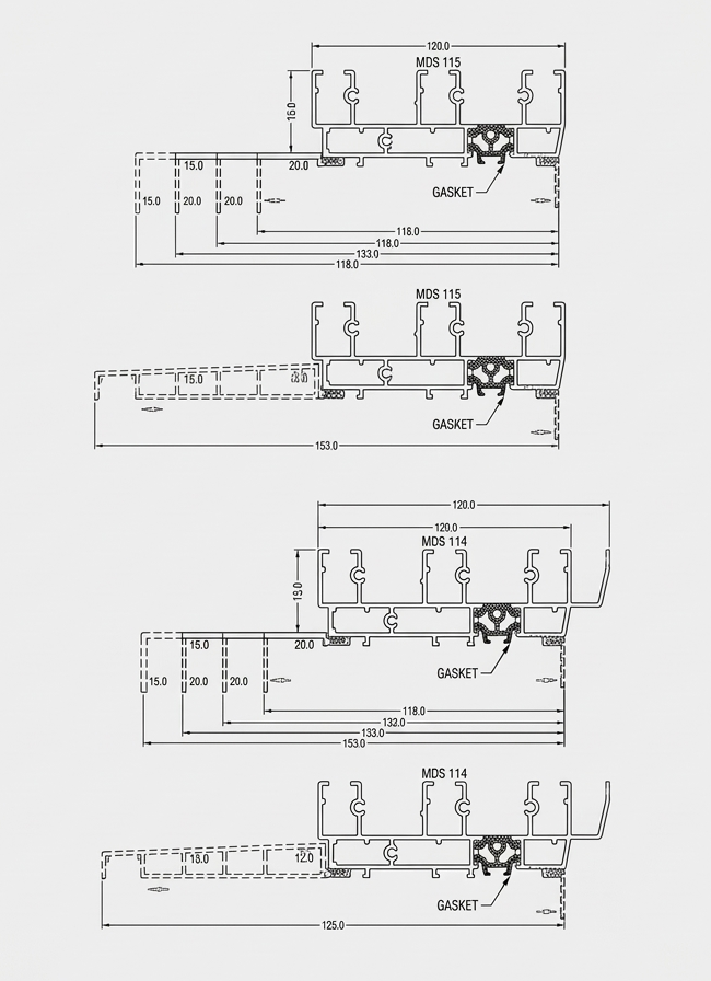 Modern Slide oferuje specjalny wariant, w którym skrzydła chowają się całkowicie wewnątrz ściany budynku, otwierając pełne światło przejścia.
