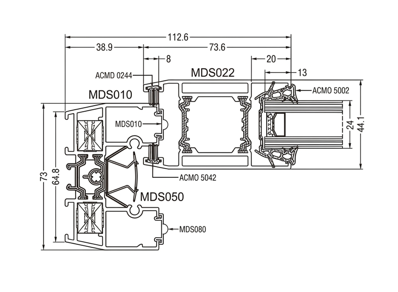 ościeżnica: 73 mm | skrzydło: 41 mm |